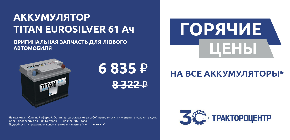 В сети магазинов «ТРАКТОРОЦЕНТР» стартовала акция на аккумуляторы.